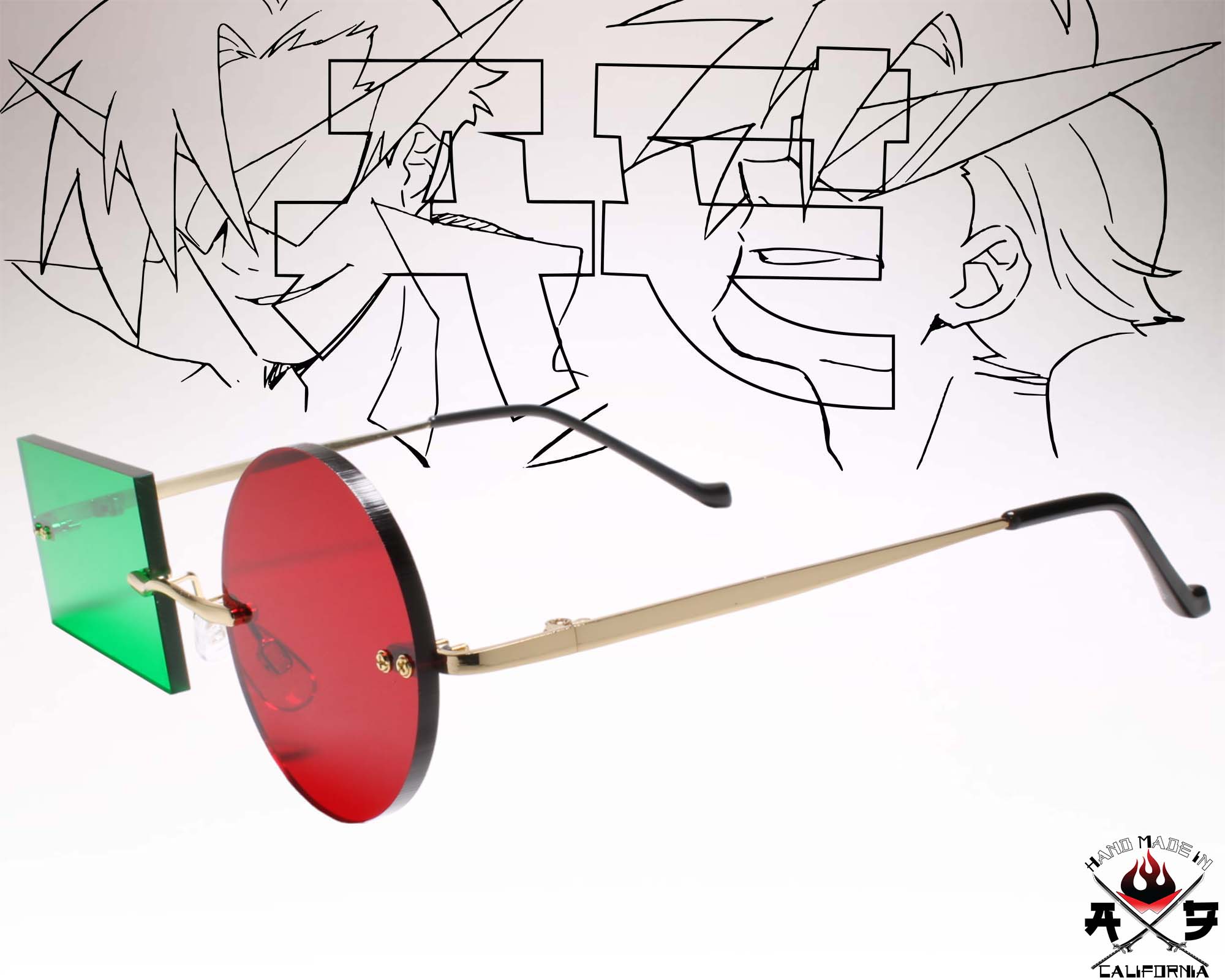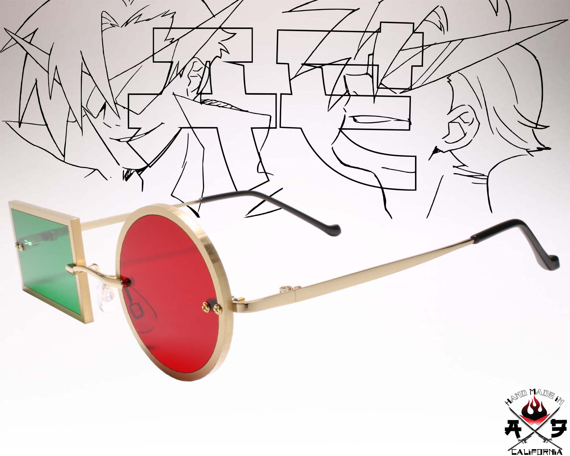 Spider Jerusalem Transmetropolitan Inspired Gold Frame W/ Red & Green Lens Costume Party Cosplay Eyewear Sun Glasses